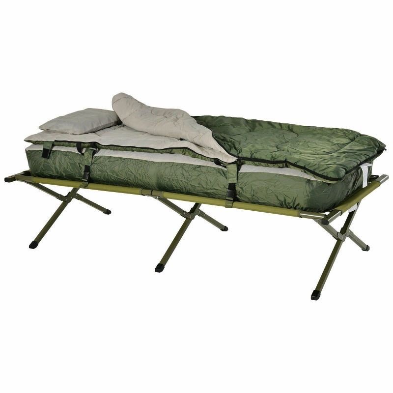 Package Includes:1x Camping Tent1x Cot1x Sleeping Bag1x Pillow1x Foot Pump1x Storage Bag1x Manual Guide Book